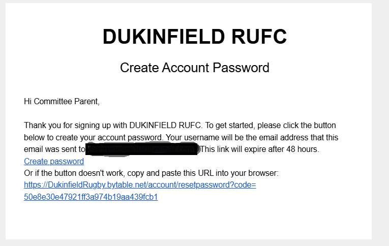 The email will look like this, you need to select the hyper link, ‘Create Password’.