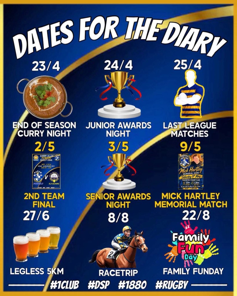 As we approach the end of the 2025/2026 season across senior and junior rugby we have a number of activities taking place across the club community. We hope you can join us at as many of these events as possible!
